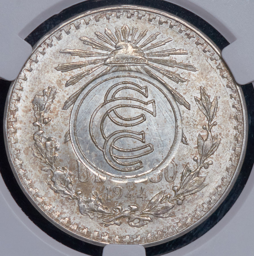 Чеканен на мексиканском песо 1944 года.