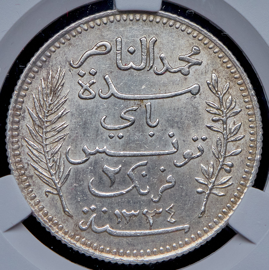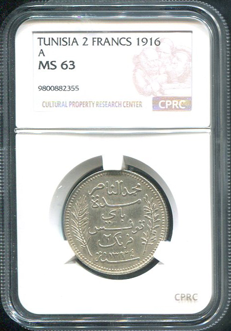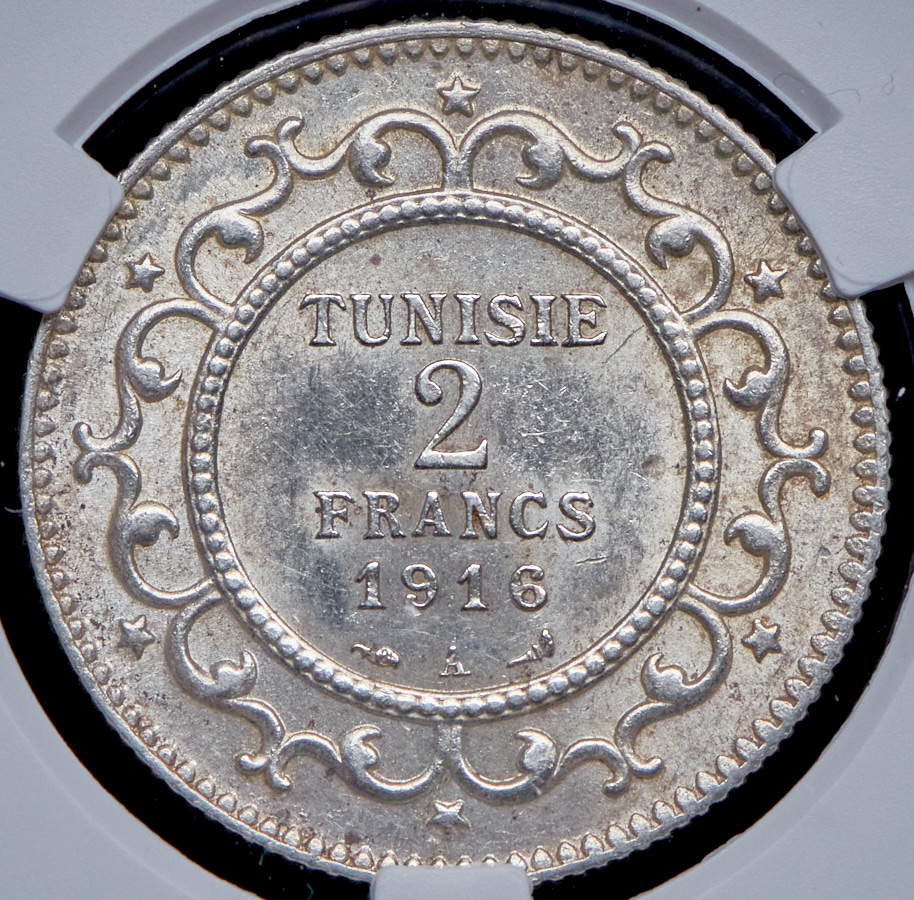 2 франка 1916 (Французский Тунис) (в слабе) А