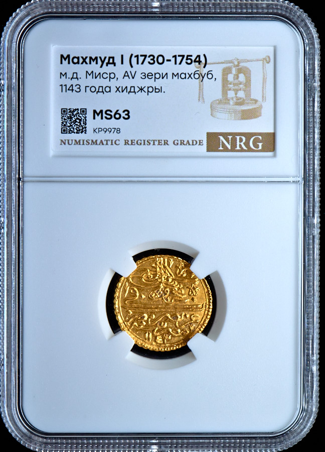 Махмуд I (1730-1754).1143 год хиджры. Монетный двор Миср (Египет).В слабе NRG.