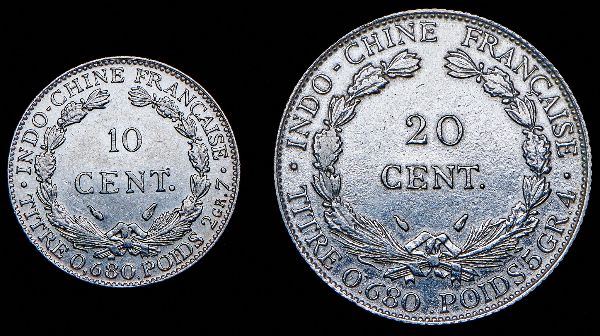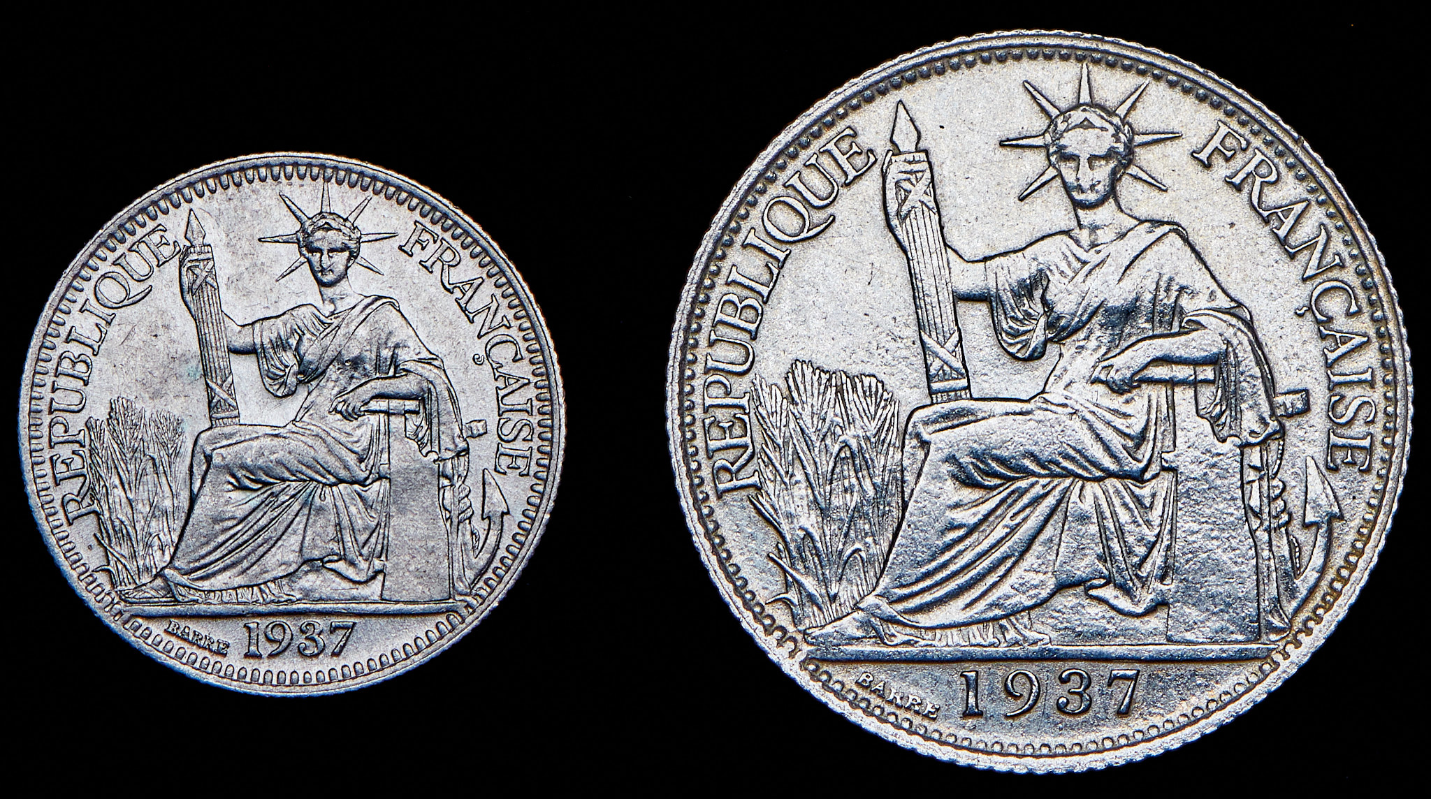 Набор из 2 сер. монет 10, 20 сантимов 1937 (Французский Индокитай)
