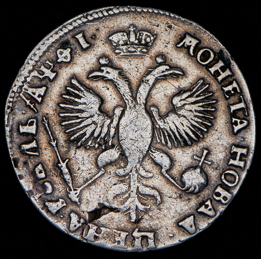 Красный монетный двор. Аверс: инициалы медальера "ОК", с пряжкой на плаще, розетка на плече, с арабесками на груди. Малый крест над головой. Большой крест на державе.