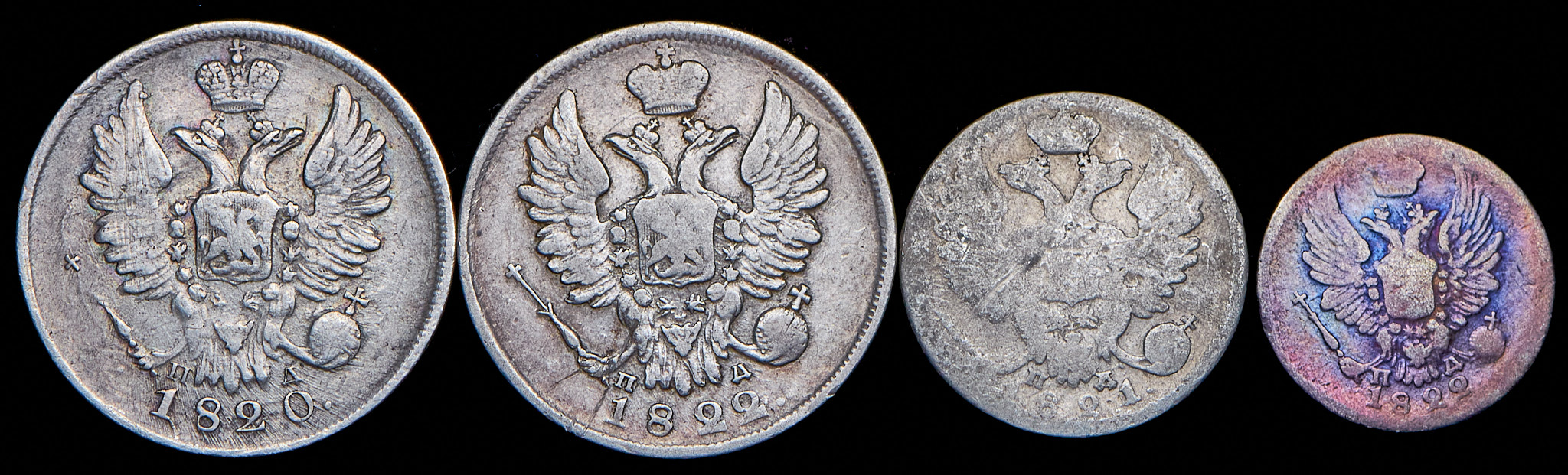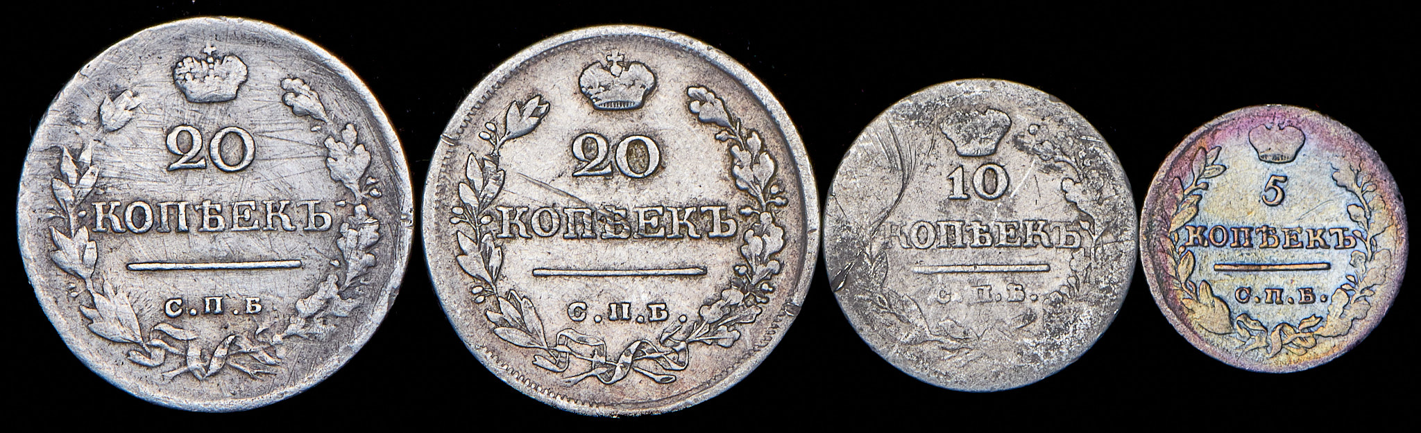 Набор из 4 сер. монет 5, 10, 20 копеек 1820-1822