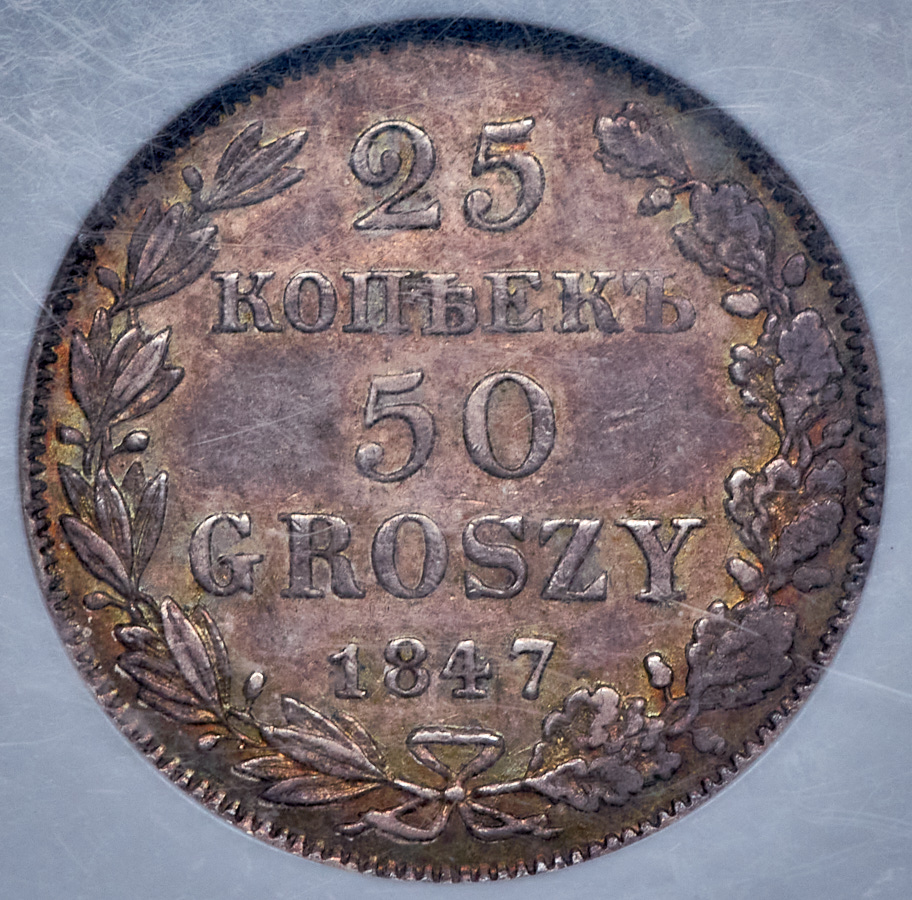 25 копеек - 50 грошей 1847 (в слабе) MW