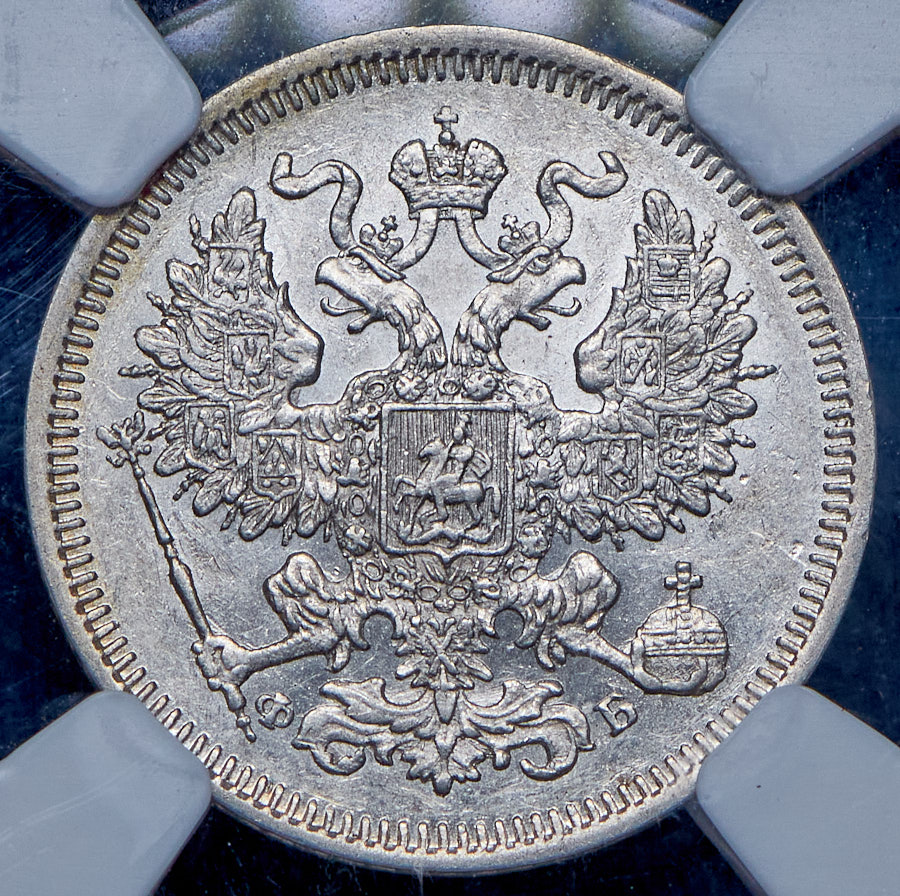 20 копеек 1860 (в слабе) СПБ-ФБ