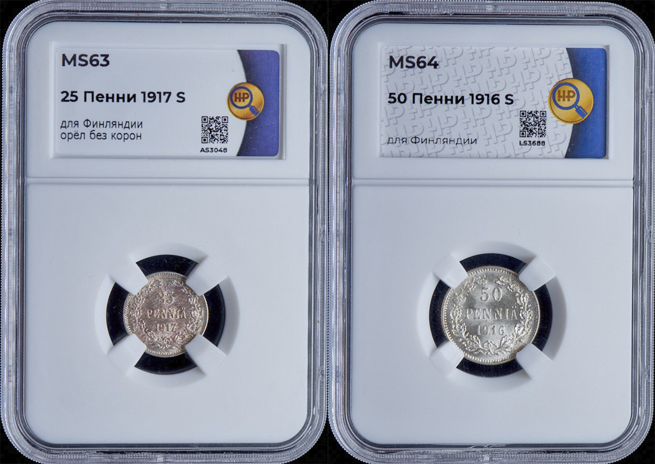 В набор вошли:1. 25 пенни 1917 S, MS 63. 2. 50 пенни 1916 S, MS 64.В слабах ННР.