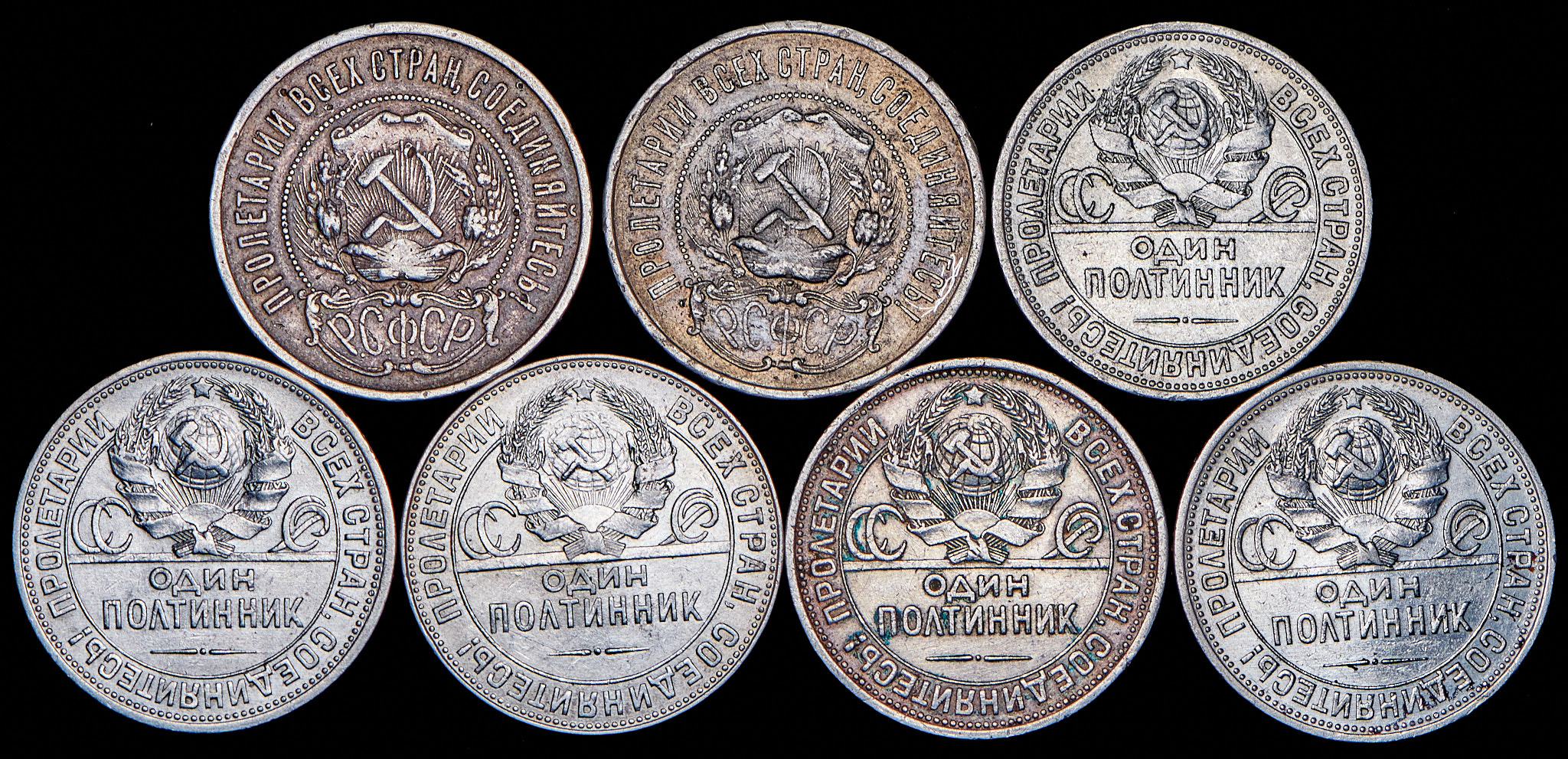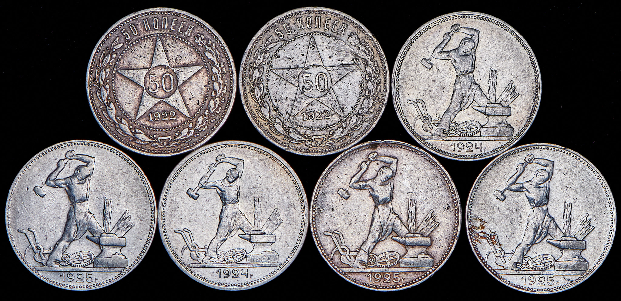 Набор из 7 сер. монет 50 копеек, Полтинник 1922-1925