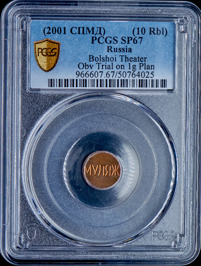 Односторонний оттиск 10 рублей 2001 "225 лет Большому театру". МУЛЯЖ (в слабе) СПМД