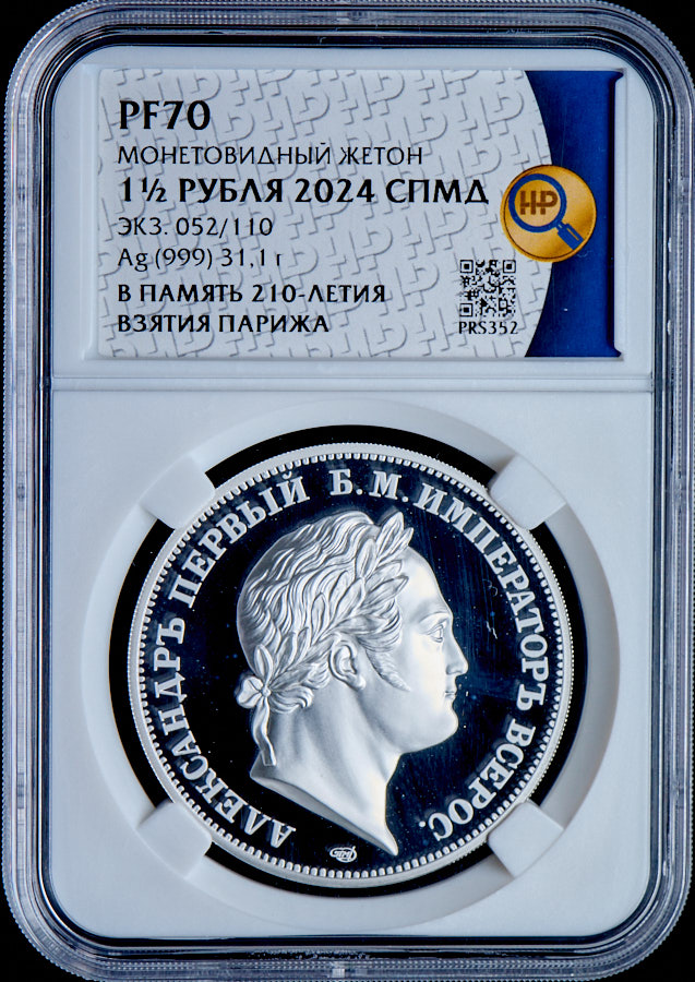 1 1/2 рубля 2024 "В памяти 210-летия взятие Парижа" (в слабе) СПМД