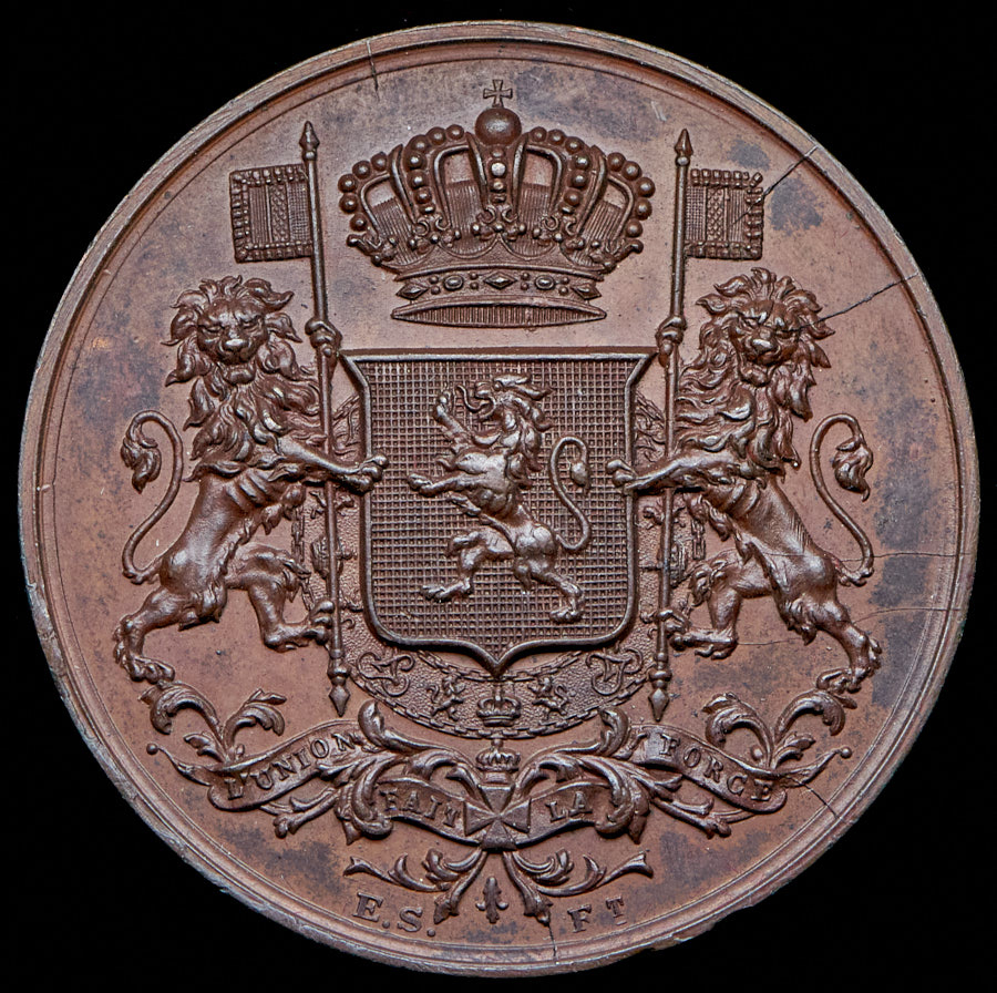 Диаметр 48,9 мм.Медальер с инициалами E.S. Лёгкие следы бытования.