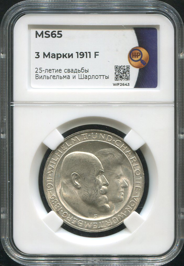 3 марки 1911 "25-летие свадьбы Вильгельма и Шарлоты" (Вюртемберг) (в слабе) F