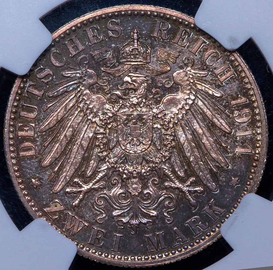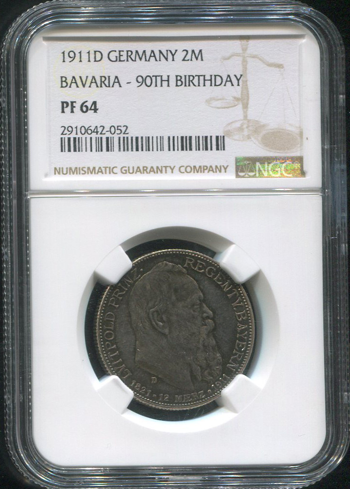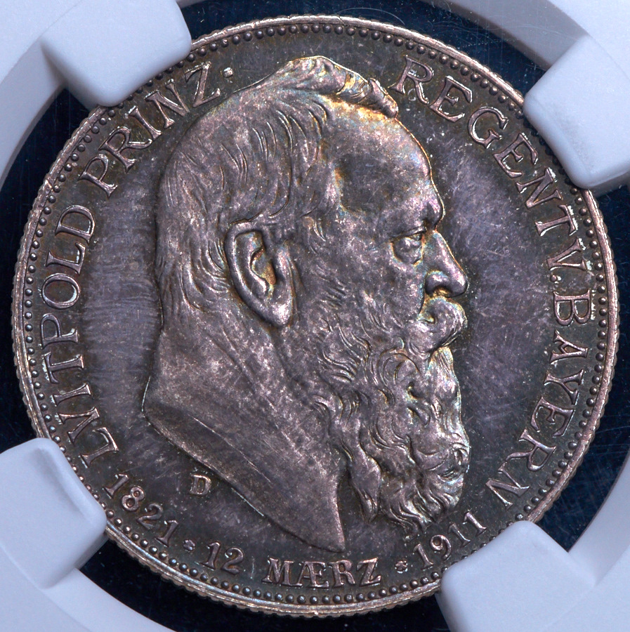 2 марки 1911 "90-летие принца-регента Луитпольда Баварского" (Бавария) (в слабе) D