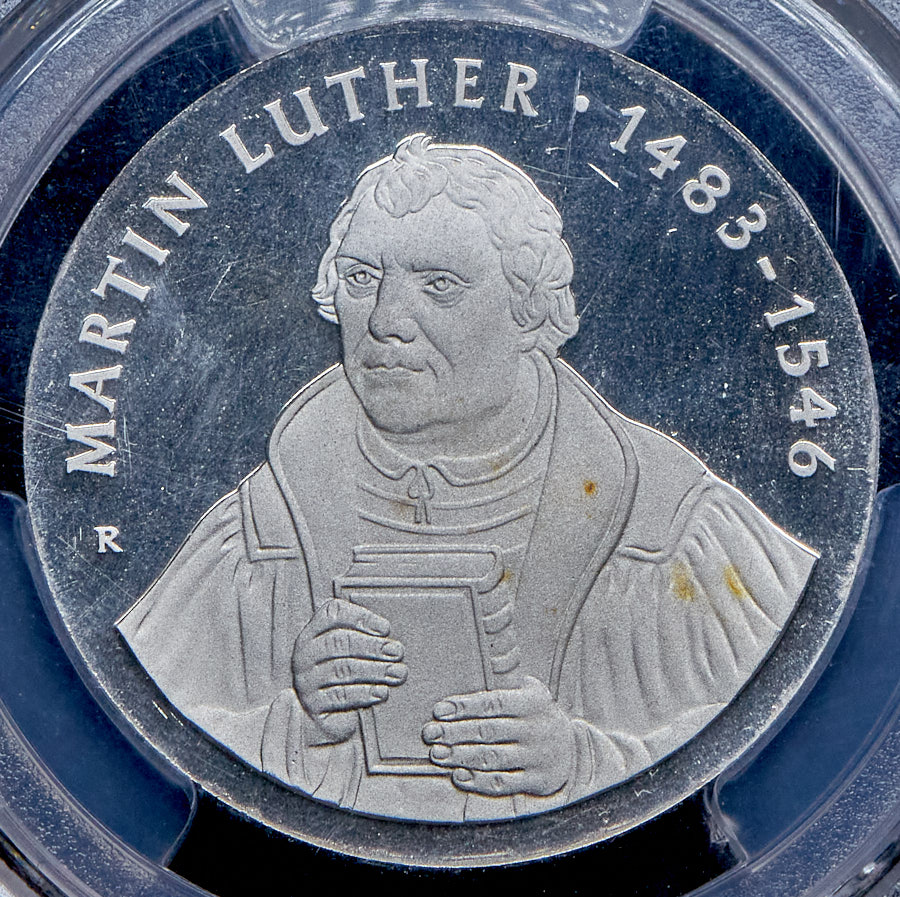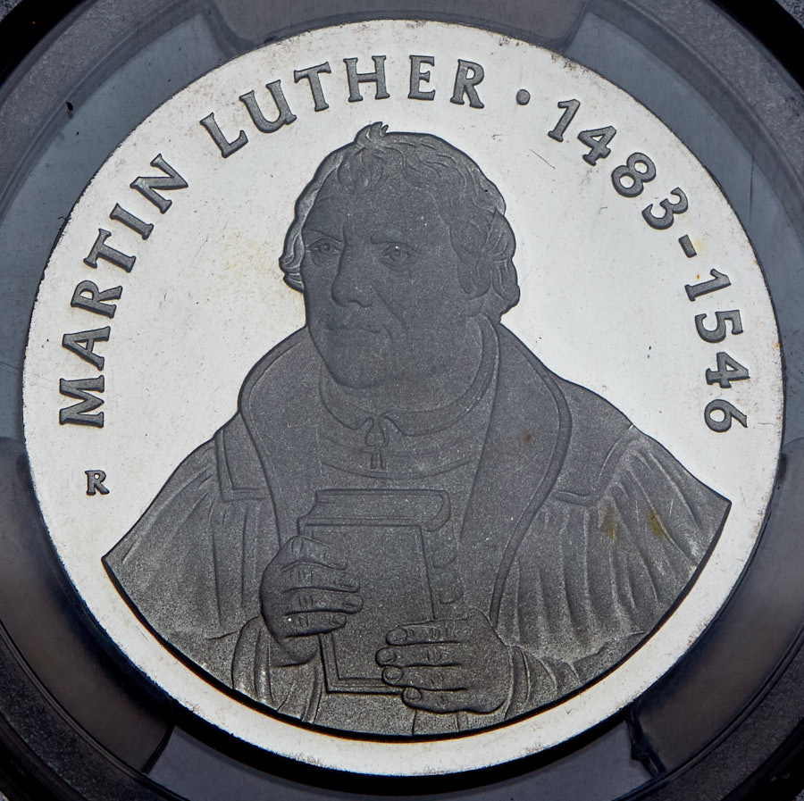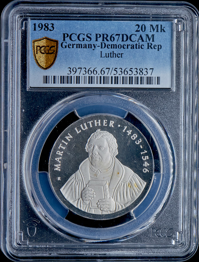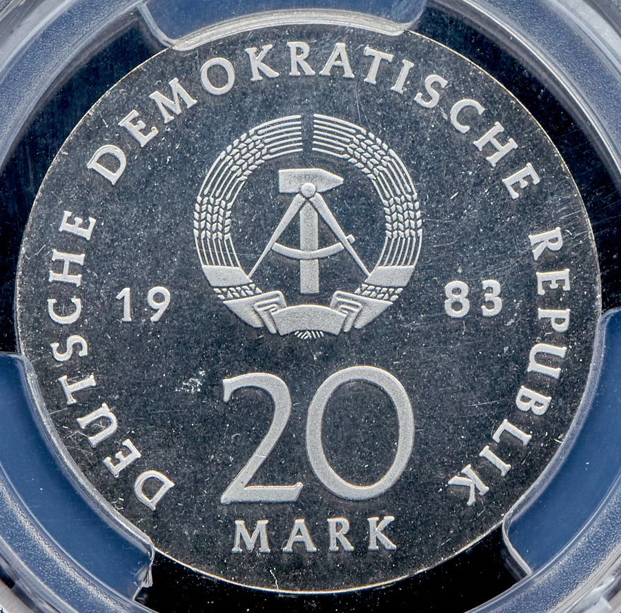 20 марок 1983 "500 лет со дня рождения Мартина Лютера" (ГДР) (в слабе)