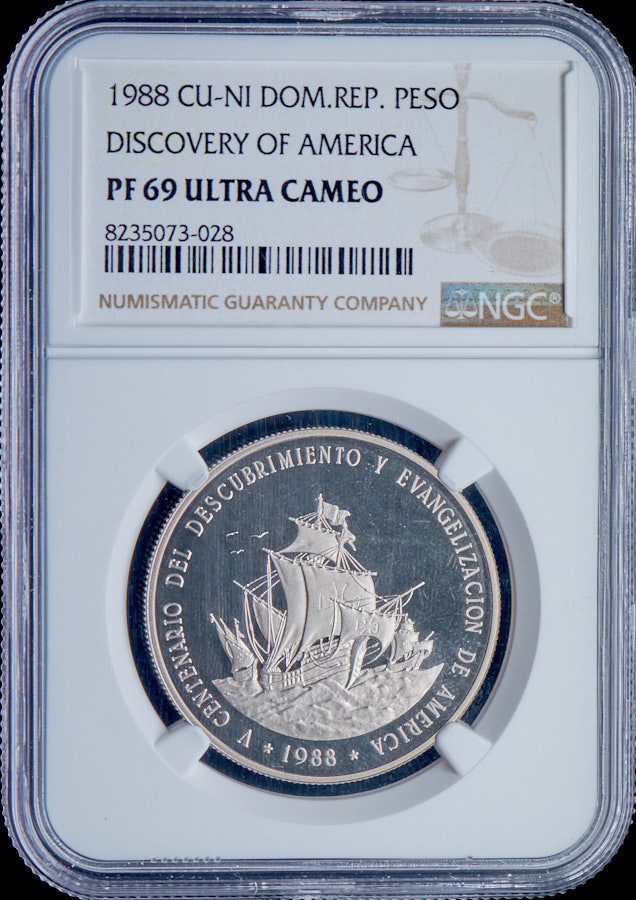1 песо 1988 "500 лет открытию и евангелизации Америки" (Доминиканская республика) (в слабе)