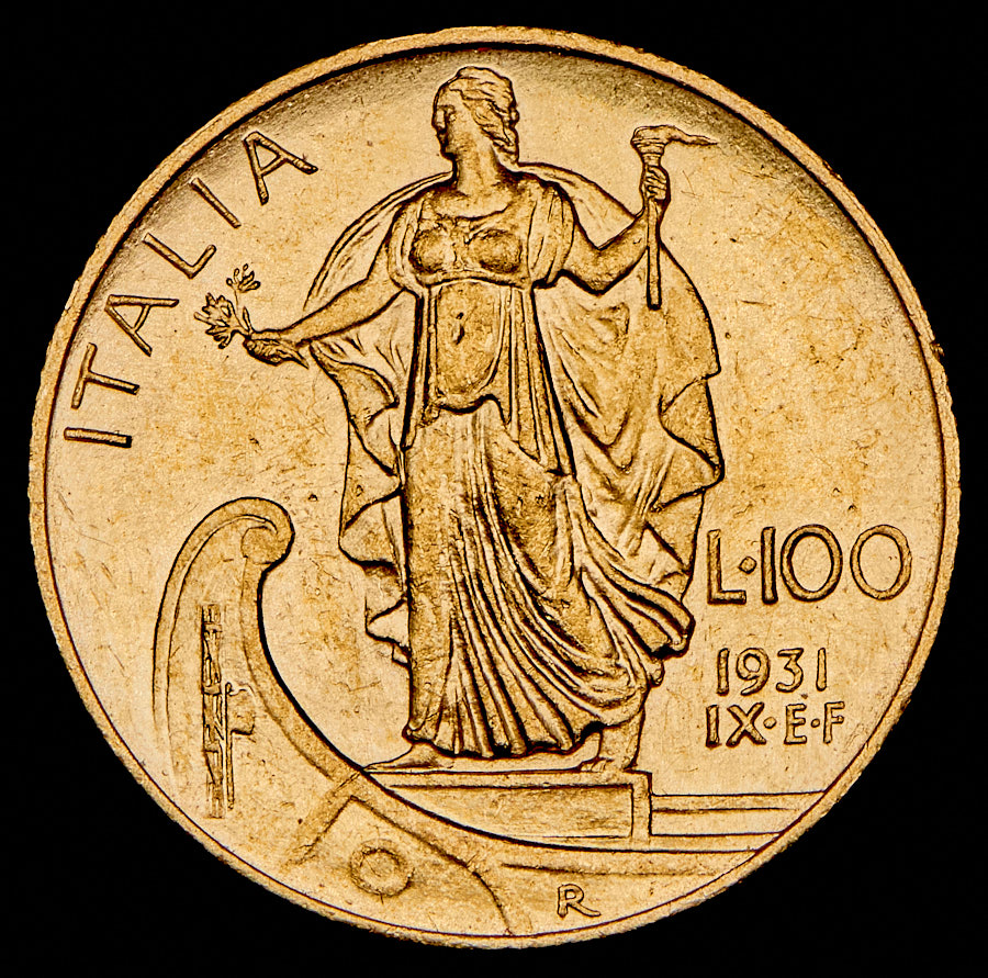 KM# 72.Золото 900 пробы.Виктор Эммануил III (1900-1946).Лёгкие следы бытования.