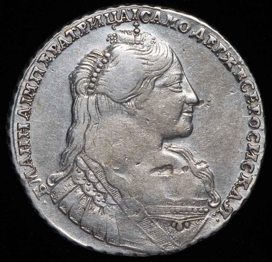 Биткин подобна 118 R1. Тип портрета 1734-37 гг., т.н. "Цыганка". С кулоном из 3 жемчужин на груди.