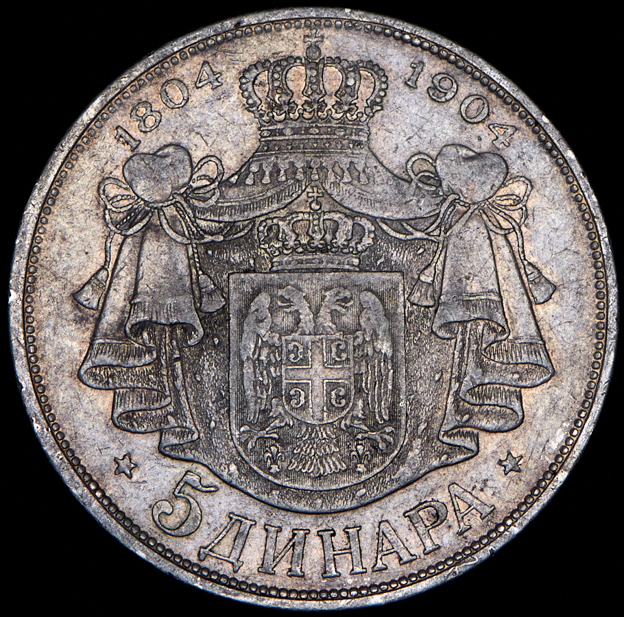 5 динаров 1904 "100 лет династии Карагеоргиевичей" (Сербия)