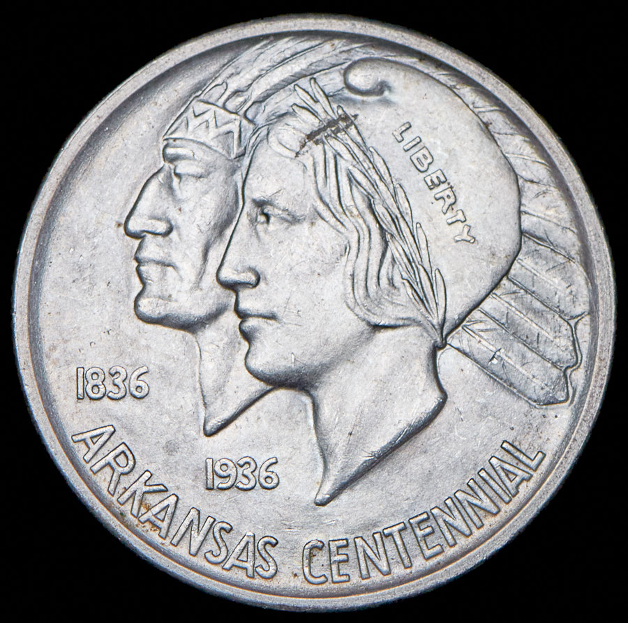 Легенда аверса "1836 1936 / ARKANSAS CENTENNIAL".