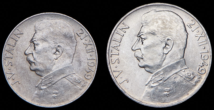 Набор из 2 сер. монет 50 и 100 крон 1949 "70 лет со дня рождения Сталина" (Чехословакия)
