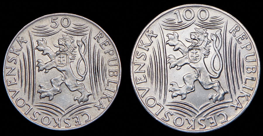 Монеты отчеканены в тот период страны, когда она была Чехословацкой социалистической республикой (1946-1960).
