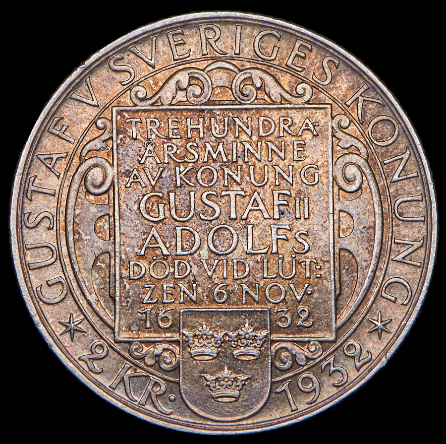 2 кроны 1932 "300 лет со дня смерти Густава II Адольфа" (Швеция)