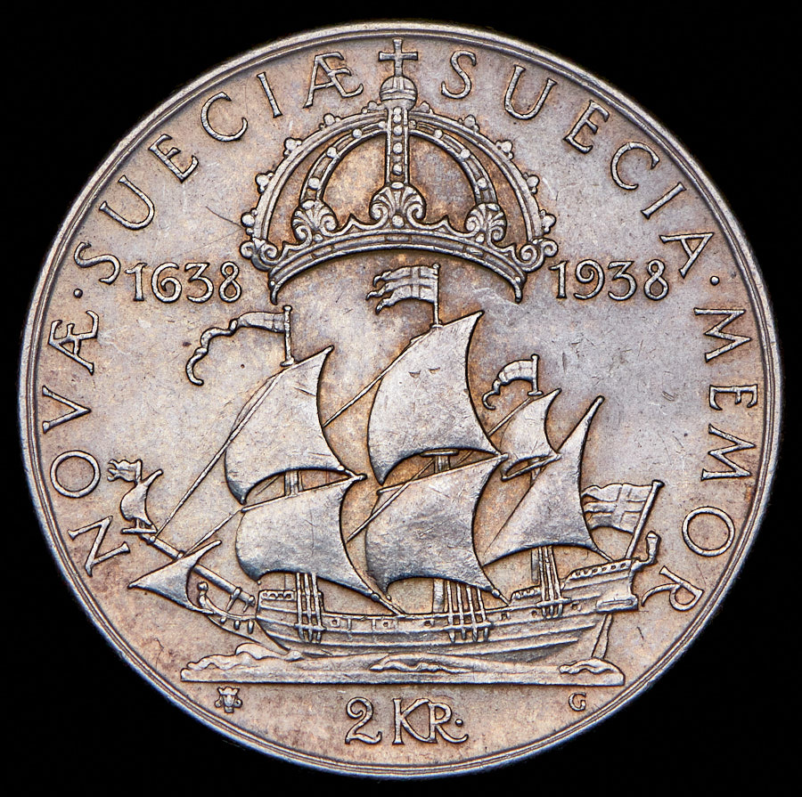 2 кроны 1938 "300 лет поселению Делавэр" (Швеция)