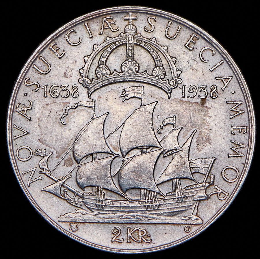 2 кроны 1938 "300 лет поселению Делавэр" (Швеция)