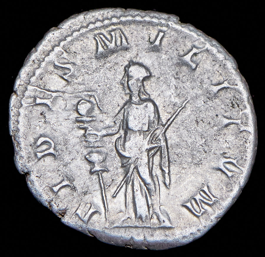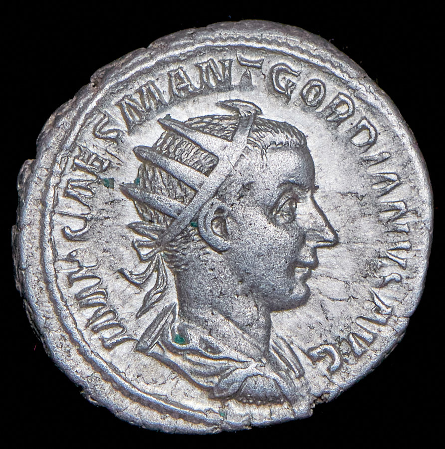 Антиохия. Аверс: драпированный бюст императора в личистой короне вправо "IMP CAES MANT GORDIANVS AVG". Реверс: "FIDES MILITVM" Фиде с копьем и трофеем влево.