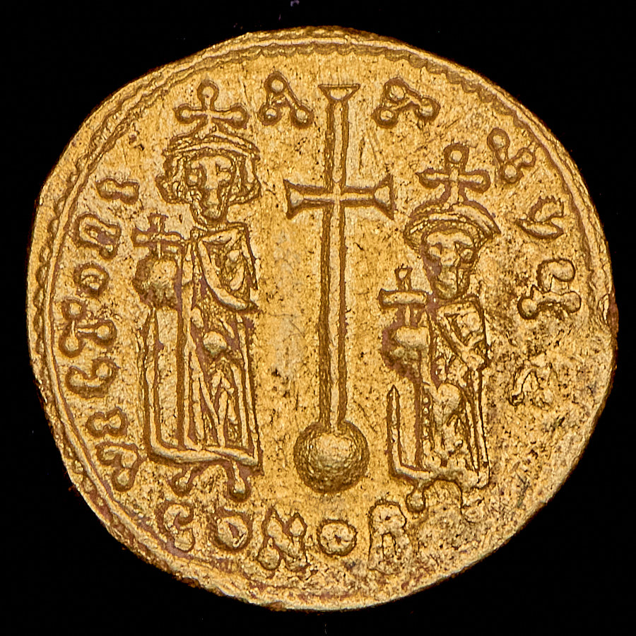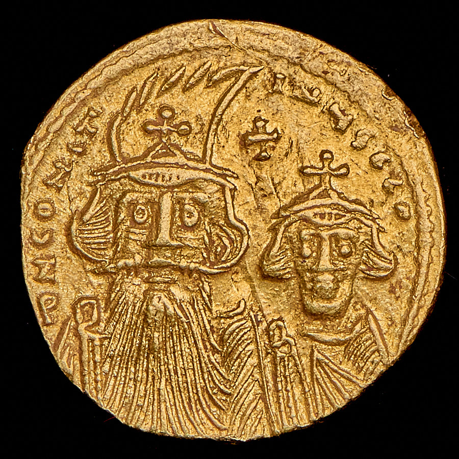Константинополь. Аверс: круговая легенда "DN CONS-TANI"; портрет Константина с длинной бородой слева и Константина IV-младшего правителя, справа. Изображение креста на поле. Реверс: круговая легенда "VICTORI-A-AVГЧ"; ростовые изображения Ираклия и Тиберия и державы между ними.