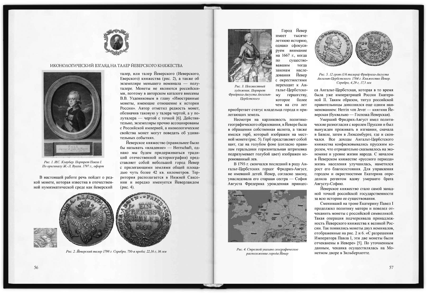 В первой части работы в форме очерков освещены некоторые аспекты монетной иконографии и монетной иконологии периода правления императора Павла I. Рассмотрены главные этапы жизни и становления великого князя Павла Петровича в неразрывной связи с монетами и медалями, чеканка которых сопровождала вехи его биографии. Расшифрованы причины отказа Павла от размещения его портрета на государственных монетах. Исследованы иконографические и иконологические нюансы гербового орла и крестов на павловских монетах и медалях. Освещены некоторые теневые стороны новодельных золотых монет Павла I.