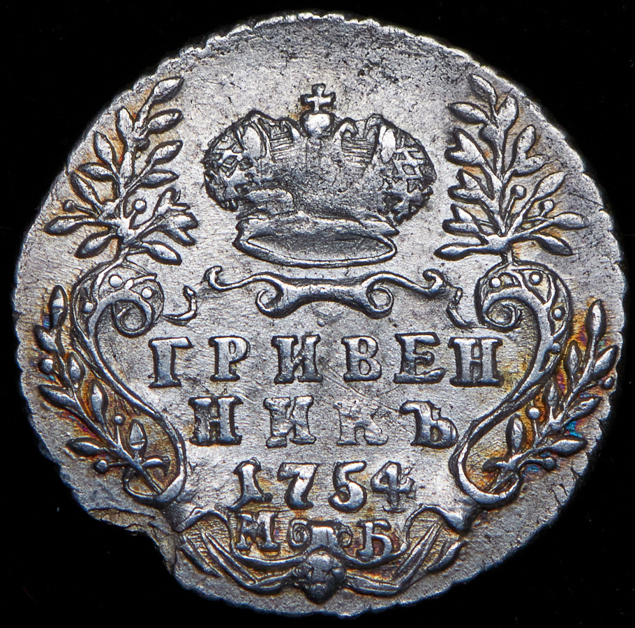 Гривенник 1754 МБ