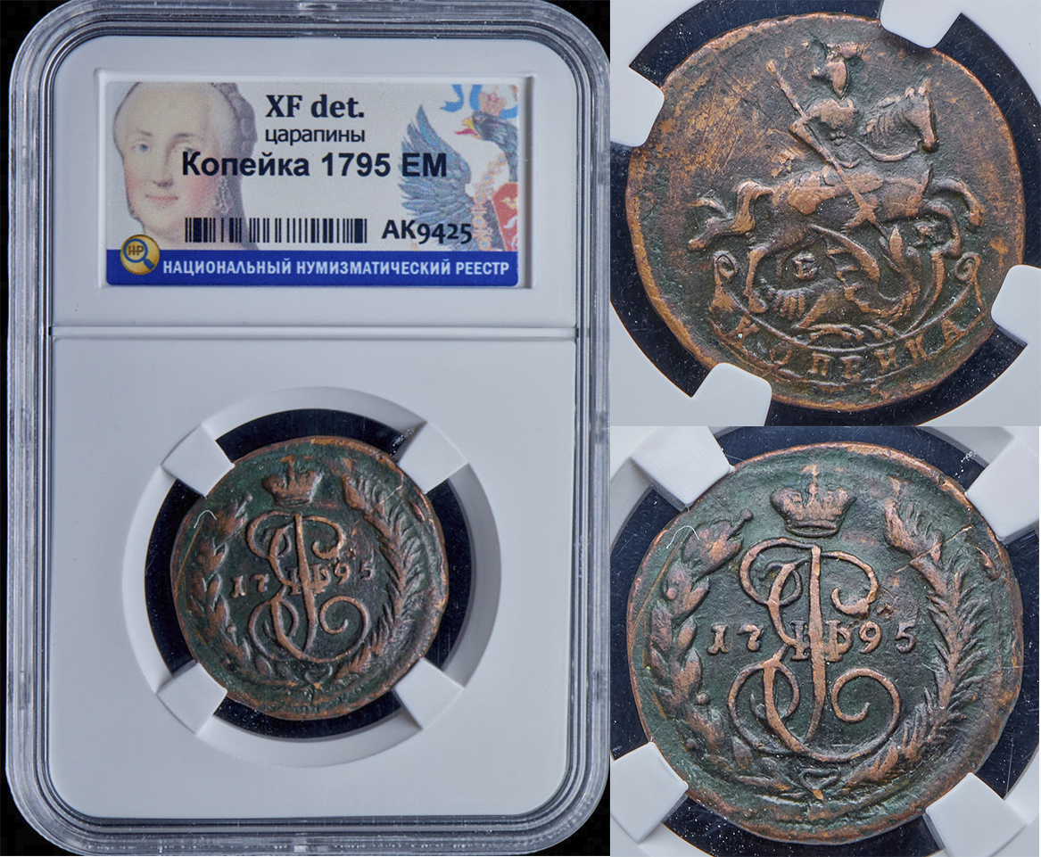 Копейка 1760 VF Details, Копейка 1795 ЕМ VF Details.В слабах ННР.