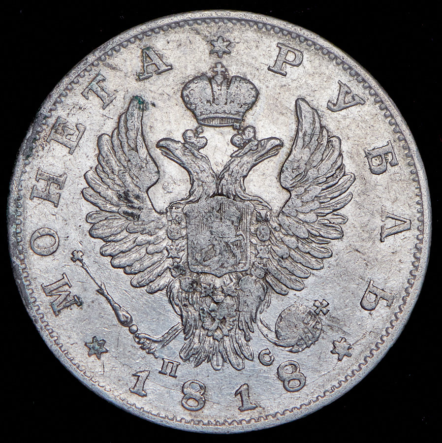 Уздеников 1445.Биткин 124.Орёл образца 1818 года: хвост орла длиннее.Следы местной чистки.