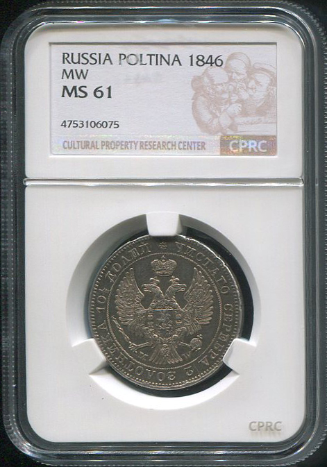 Полтина 1846 (в слабе) МW