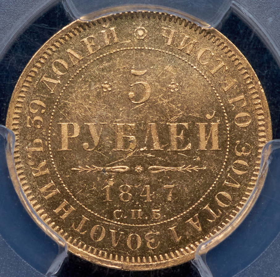 5 рублей 1847 (в слабе) СПБ-АГ
