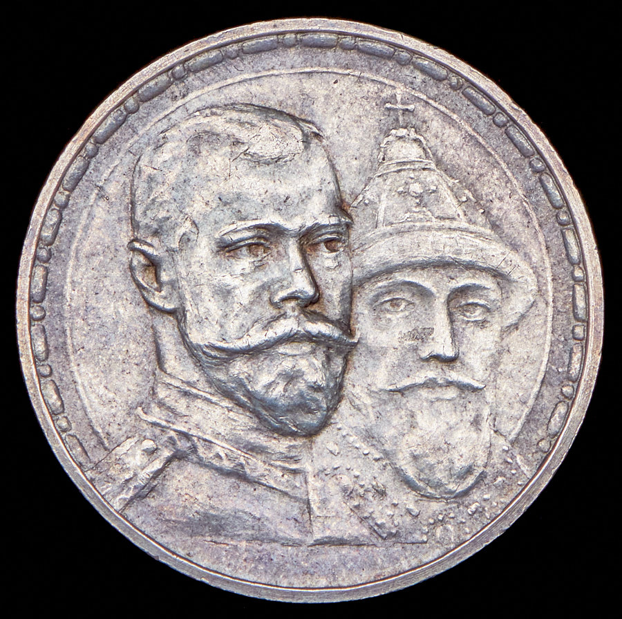 Чеканен в память 300-летия царствования Дома Романовых.