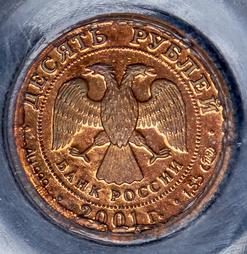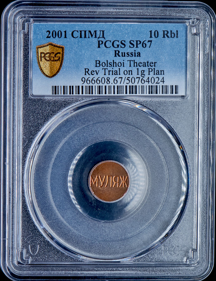 Односторонний оттиск 10 рублей 2001 "225 лет Большому театру". МУЛЯЖ (в слабе) СПМД