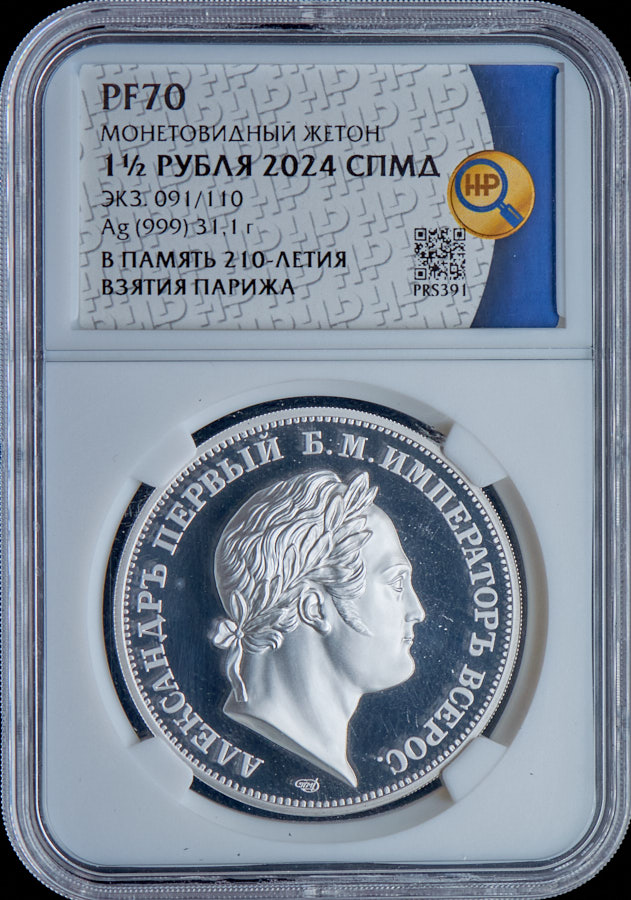 1 1/2 рубля 2024 "В память 210-летия взятия Парижа" (в слабе) СПМД