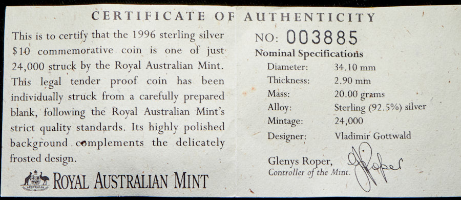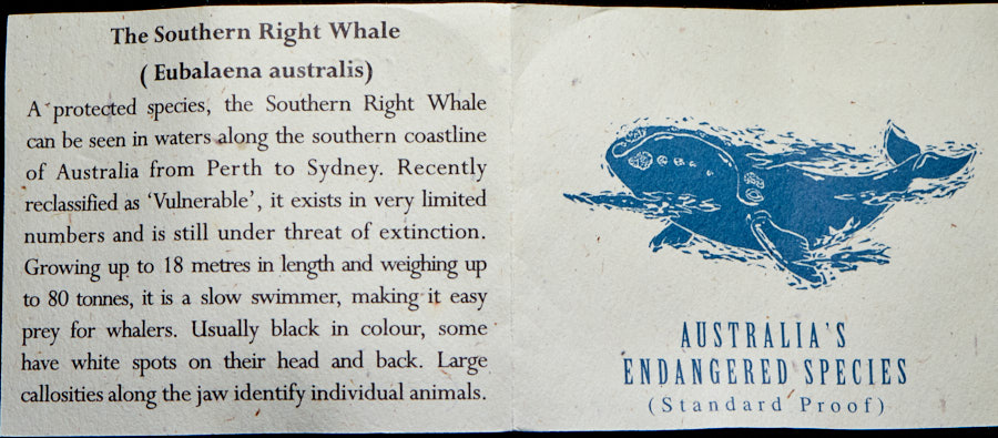 10 долларов 1996 "Южный гладкий кит" (Австралия)