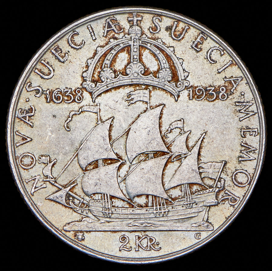 2 кроны 1938 "300 лет поселению Делавэр" (Швеция)