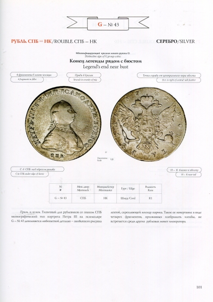 Вниманию читателя предлагается наиболее полное и информативное издание, в котором исследуются монеты Петра III. Представлен подробный каталог, включающий изображения более 100 монет, в числе которых около 80 золотых и серебряных экземпляров с портретом императора. Изучены и оформлены в виде очерков вопросы монетной иконографии Петра III. В книге читатель обнаружит много новых или малоизвестных фактов, обобщений и гипотез, которые придают изданию увлекательный характер. Высокий полиграфический уровень и качественные цветные иллюстрации позволяют наглядно представить весь спектр нумизматического материала 1762 года.