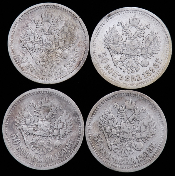 Набор из 4-х серебрянных монет 50 копеек Николая II