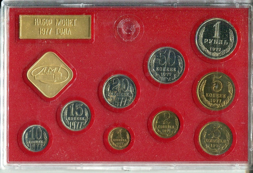 Годовой набор монет СССР 1977 (в тверд. п/у) ЛМД