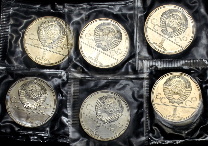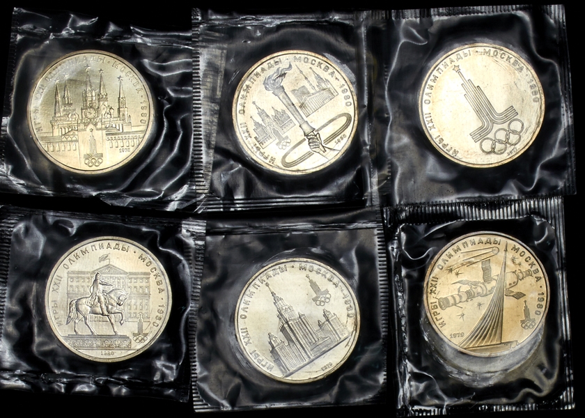 Набор из 6-ти монет 1 рубль "Олимпиада-80" (в запайках)