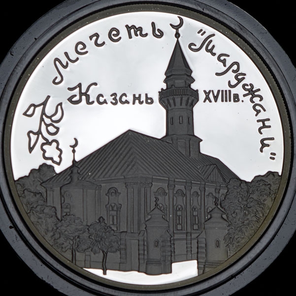 Реверс: Изображение мечети «Марджани» в г. Казани, над ней надпись: «КАЗАНЬ» и дата «XVIII в.». Вверху по окружности надпись: «МЕЧЕТЬ «МАРДЖАНИ».
