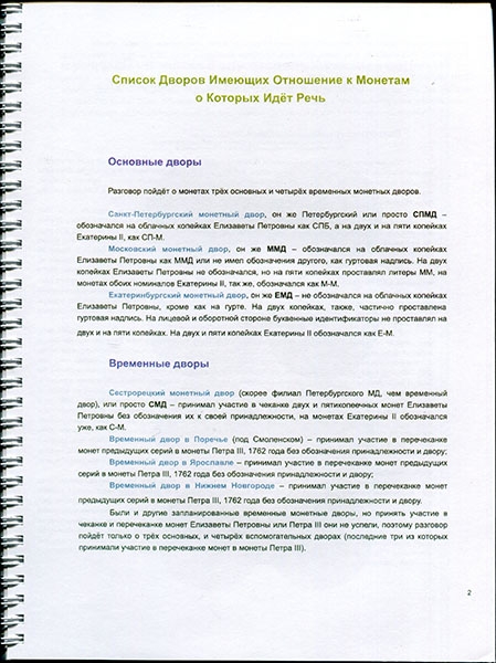 Более 100 монет 2 и 5 копеек Елизаветы Петровны, 4 и 10 копеек Петра III описаны и разложены по монетным дворам, типам и годам. Даны объяснения как различать монеты разных дворов и типов. Обязательный справочник для коллекционеров медных монет крупных номиналов 1757-1762 гг.