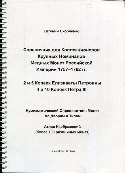 Книга Скобченко Е. "Справочник для коллекционеров крупных номиналов медных монет 1757-62 гг." 2016