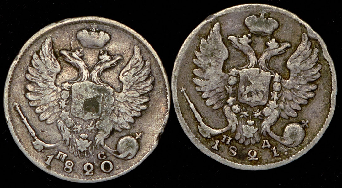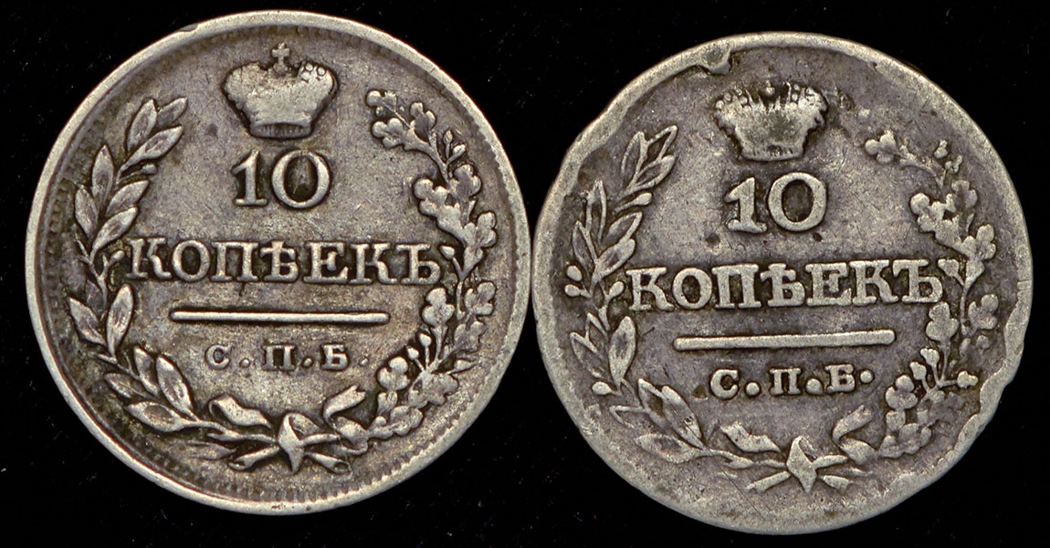 В набор вошли: 1) 10 копеек 1821 СПБ-ПД 2) 10 копеек 1820 СПБ-ПС
