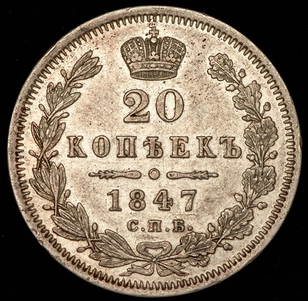 20 копеек 1847 СПБ-ПА