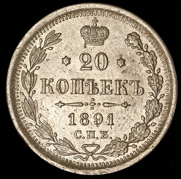 20 копеек 1891 СПБ-АГ