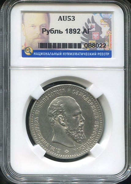 Рубль 1892 (в слабе) (АГ)